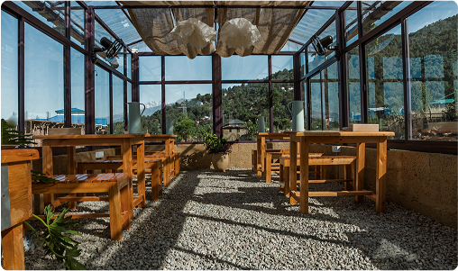 Enjoy freshly cooked meals or a cup of chai in the Glasshouse.